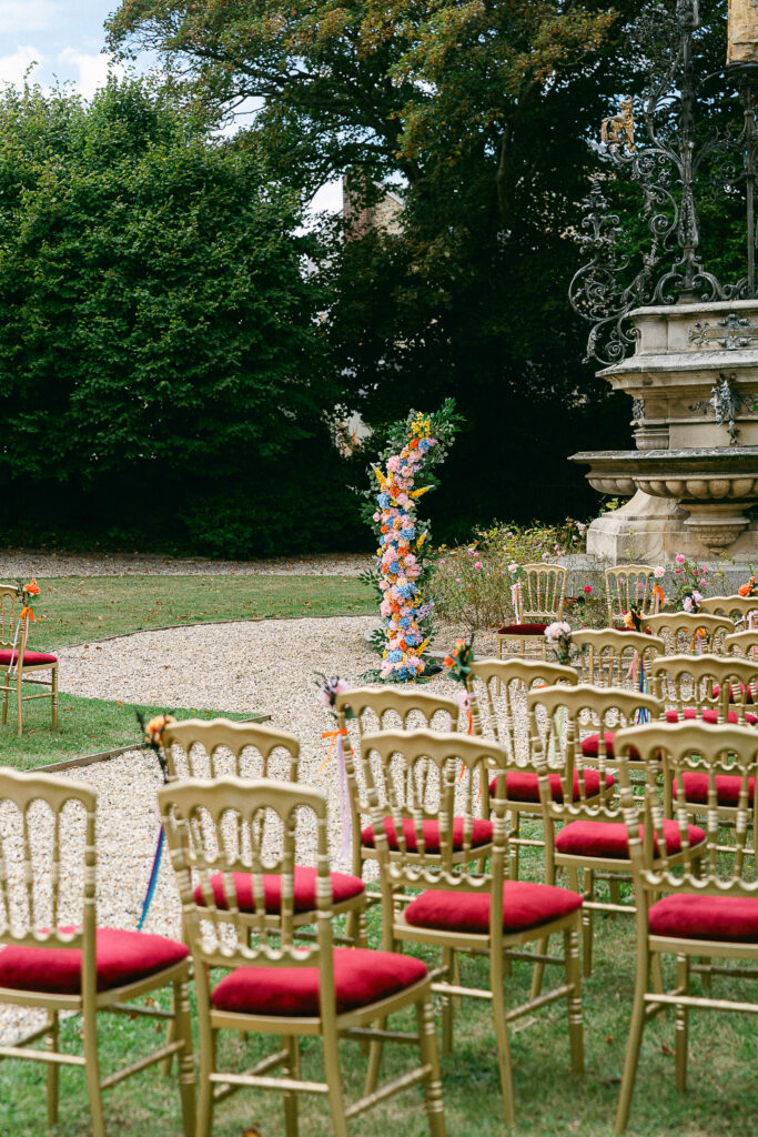 La cérémonie prend place dans le parc du Palais. Une scénographie minimaliste et coloré comme le désirait Haiyin et Erwan
