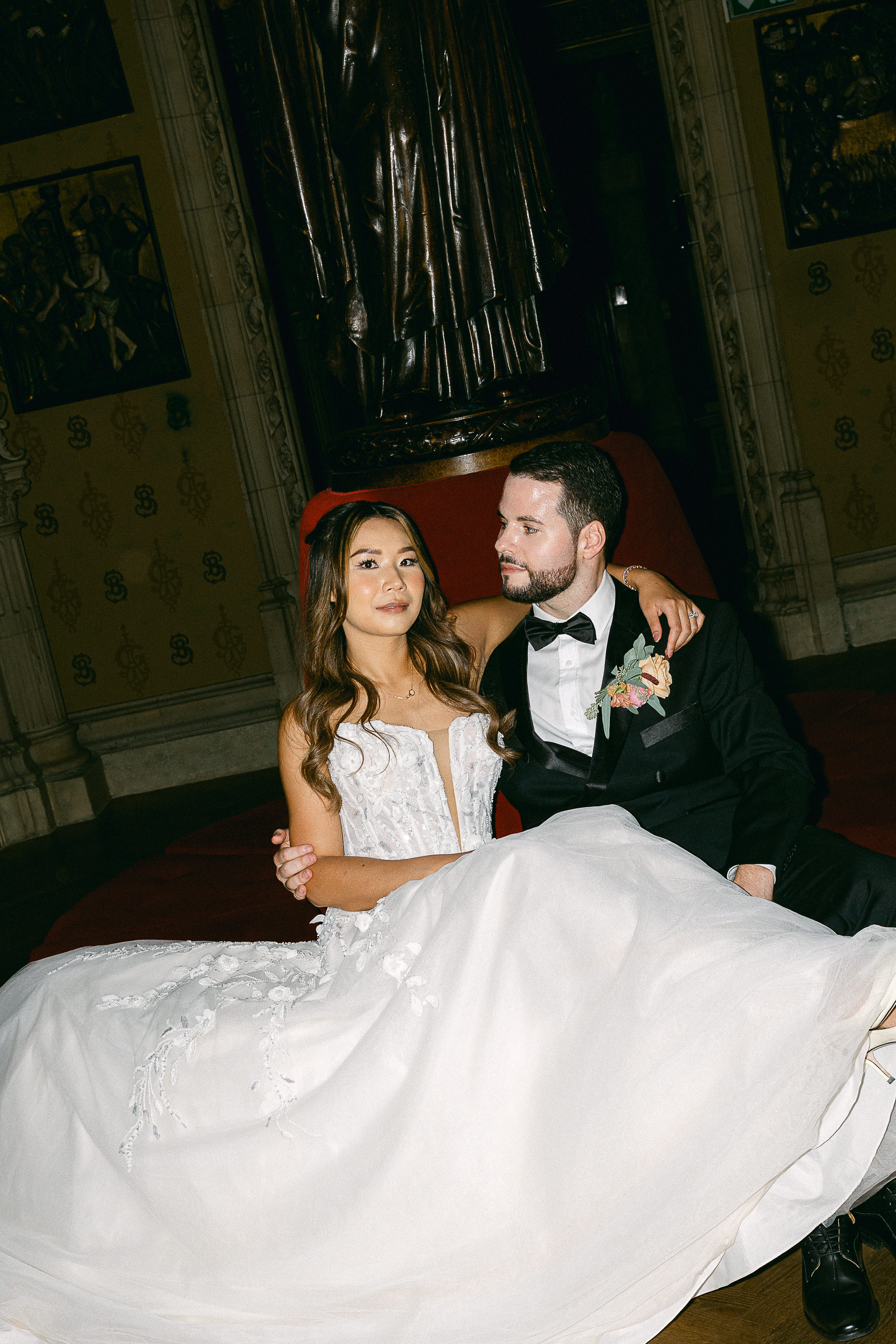 Choisir ce lieu pour célébrer leur mariage n’était pas un hasard. Haiyin et Erwan souhaitaient un cadre fort, élégant, capable d’accueillir leur histoire et celle de leurs invités venus du monde entier. Le Palais Bénédictine offrait cette atmosphère unique, à la fois grandiose et profondément intime.