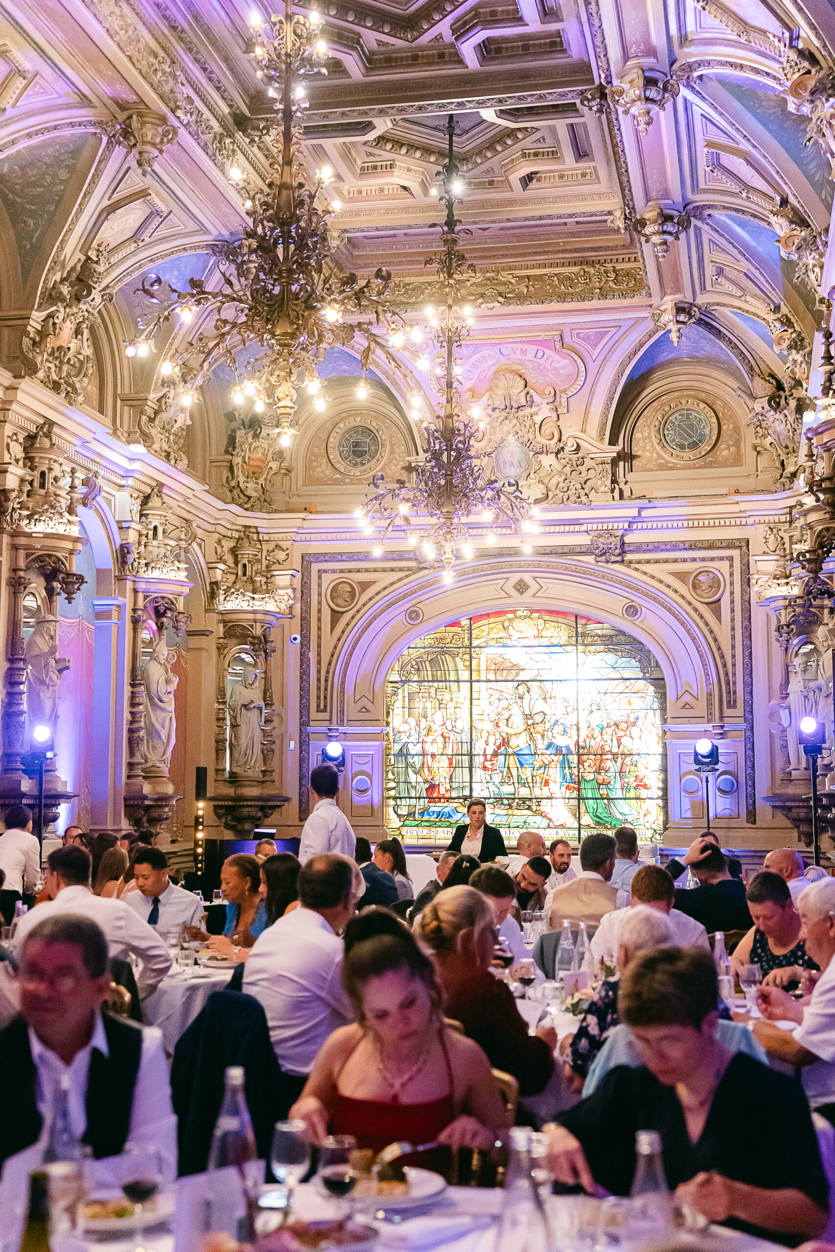 Le dîner de mariage dans la salle de réception du Palais Bénédictine