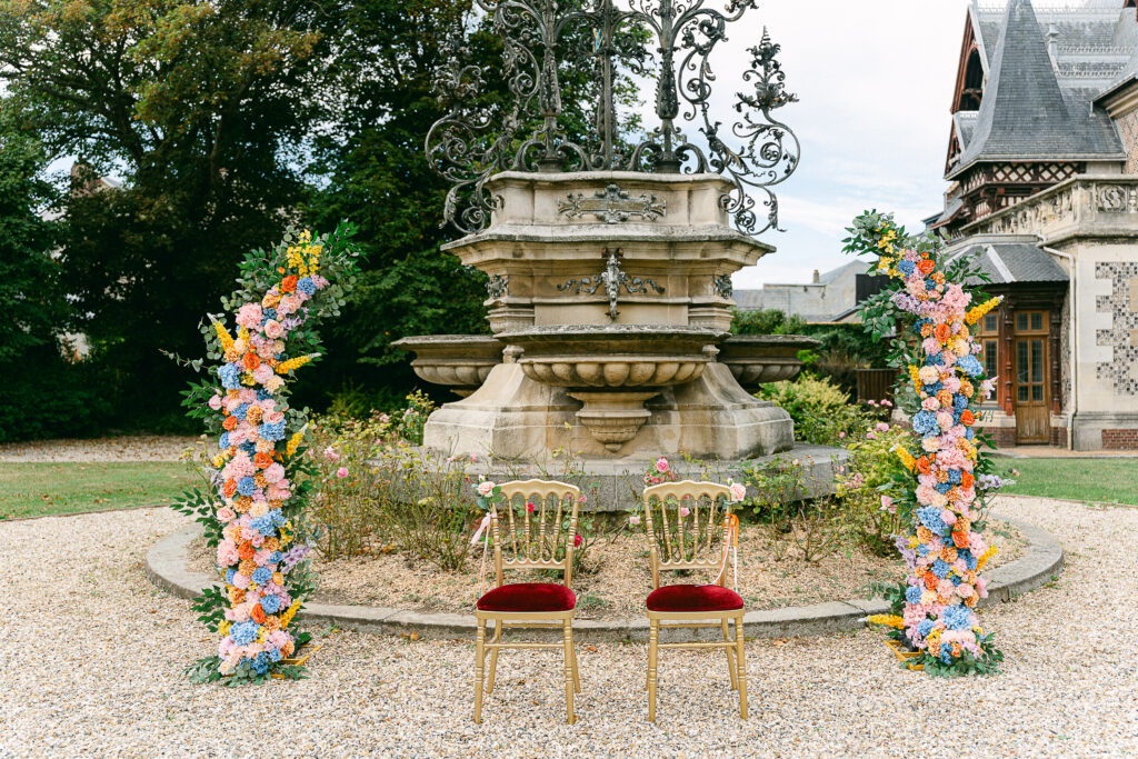 La cérémonie prend place dans le parc du Palais. Une scénographie minimaliste et coloré comme le désirait Haiyin et Erwan