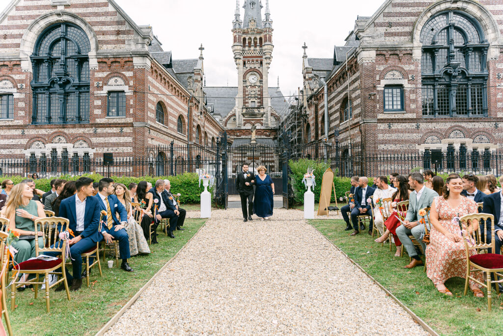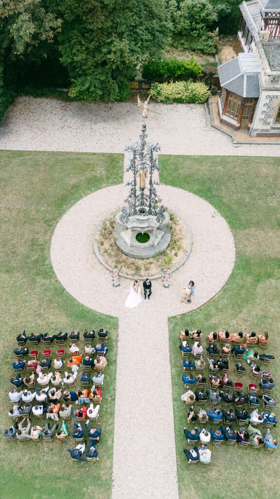 Une cérémonie de mariage en extérieur dans le parc du Palais Bénédictine