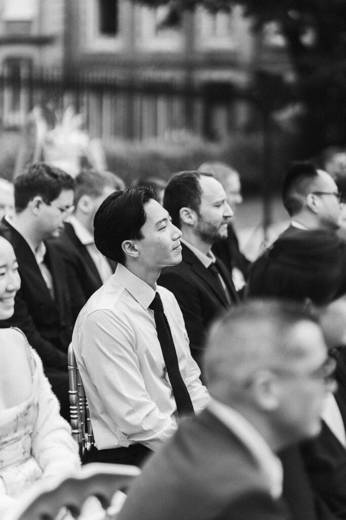 Lorsque Haiyin arrive au bras de ses parents le silence s’installe naturellement. Les regards se croisent, les émotions affleurent. Tout est là, simple et profondément sincère.